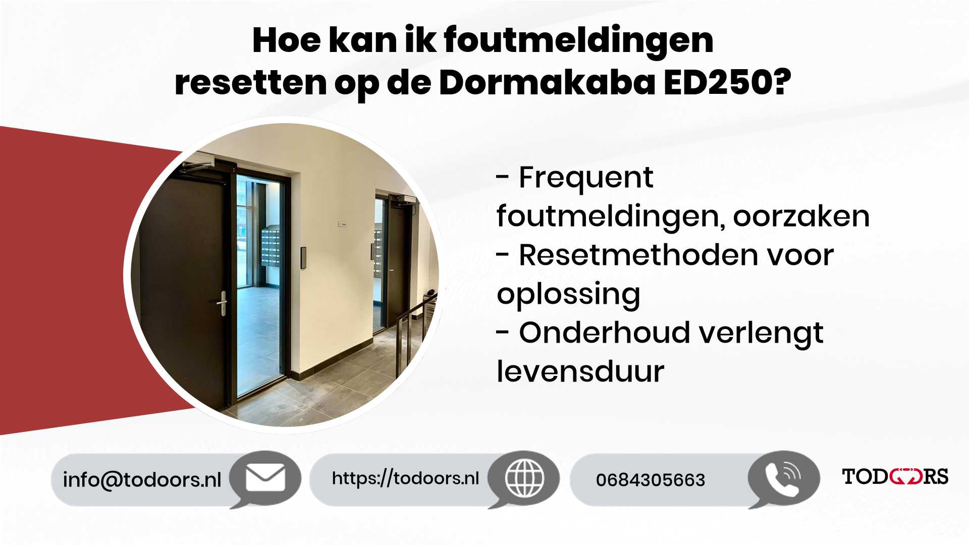 Een goede manier om foutmeldingen te voorkomen is door regelmatig onderhoud uit te voeren. Dit kan niet alleen de levensduur van je Dormakaba ED250 verlengen, maar ook de kans op foutmeldingen verkleinen. Zorg ervoor dat je de voeden, batterijen en bedrading regelmatig controleert. Wil je meer weten over de onderhoudsvereisten van elektronische deurbeslagen? Bekijk deze link.