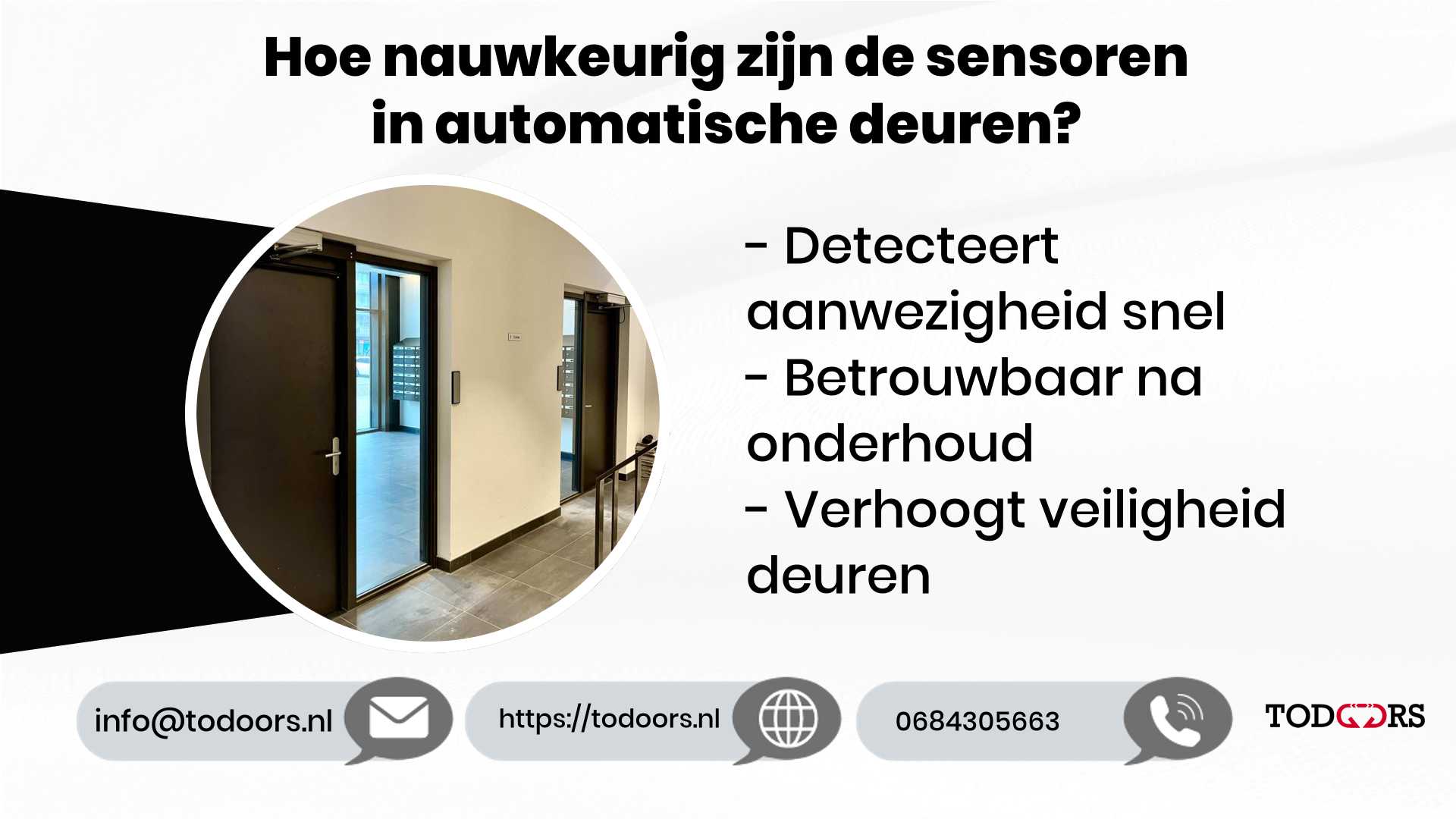 Hoewel de sensoren zeer nauwkeurig zijn, is regelmatig onderhoud belangrijk om ervoor te zorgen dat ze naar behoren blijven functioneren. Het periodiek controleren en schoonmaken van de sensoren kan helpen om hun levensduur te verlengen en te zorgen voor optimaal functioneren. Wil je meer weten over het onderhoud van automatische deuren, dan vind je hier aanvullende informatie.