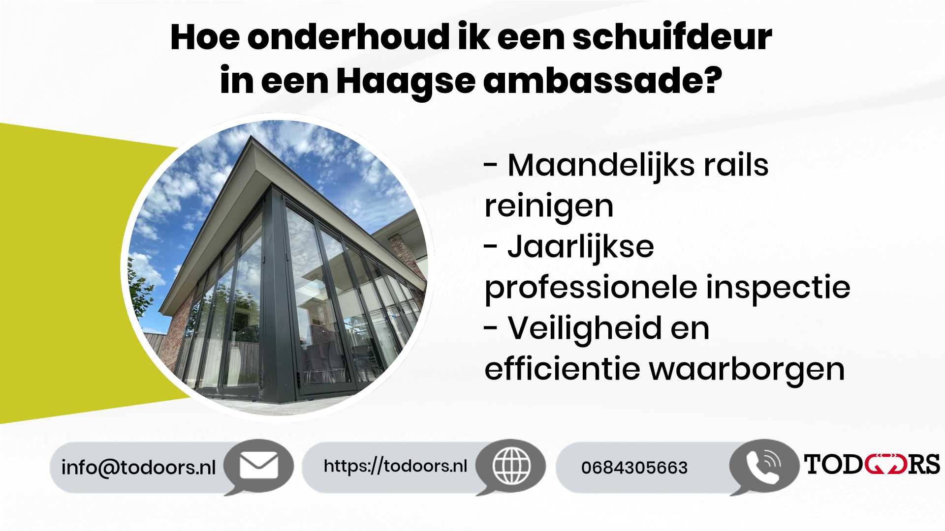 Onderhoud aan schuifdeuren in een ambassade is essentieel. Door maandelijks de rails en sensoren te reinigen en jaarlijks een professionele inspectie uit te voeren, zorg je ervoor dat alles top blijft functioneren. Dit bespaart niet alleen geld, maar waarborgt ook veiligheid en efficiëntie. Heb je vragen? Neem gerust contact met ons op via live chat 24/7.