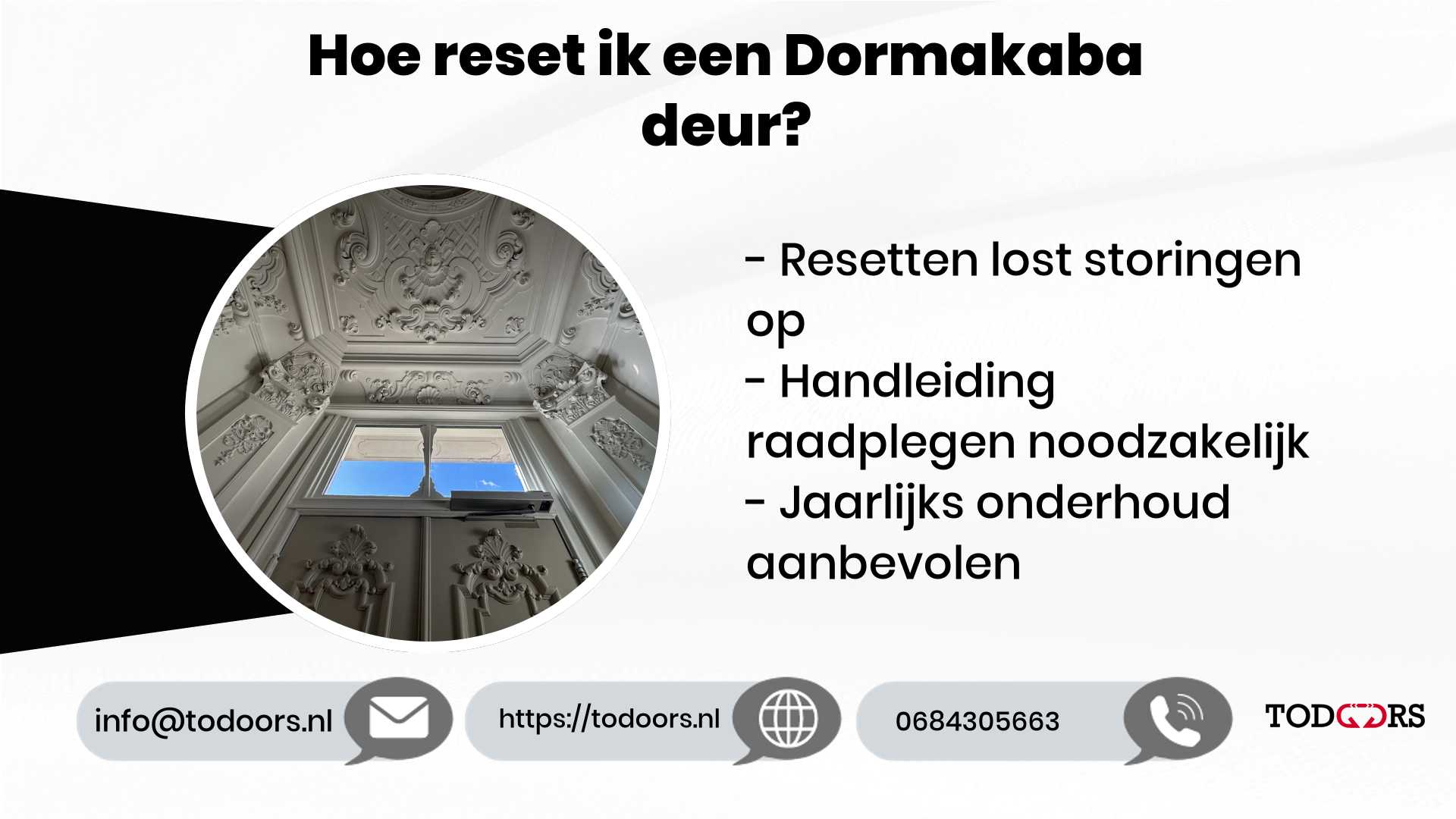 Resetten van je Dormakaba deur is een vrij eenvoudige procedure die vaak veel problemen kan verhelpen. Het is een kwestie van de deursturing uit- en aanzetten en de instructies in de handleiding volgen. Mocht je toch problemen ondervinden of als je gewoon meer wilt weten over automatische deuren, neem dan gerust contact met ons op via live chat 24/7. We staan altijd voor je klaar om je te helpen!