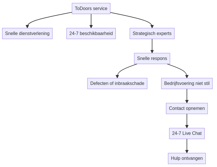 Bij acute defecten of inbraakschade streeft ToDoors ernaar om binnen enkele uren ter plaatse te zijn. Onze prioriteit is om de toegang tot uw pand te waarborgen en de veiligheid weer op peil te brengen. Wat betekent dit voor u? Minder stilstand en meer focus op uw bedrijfsvoering.