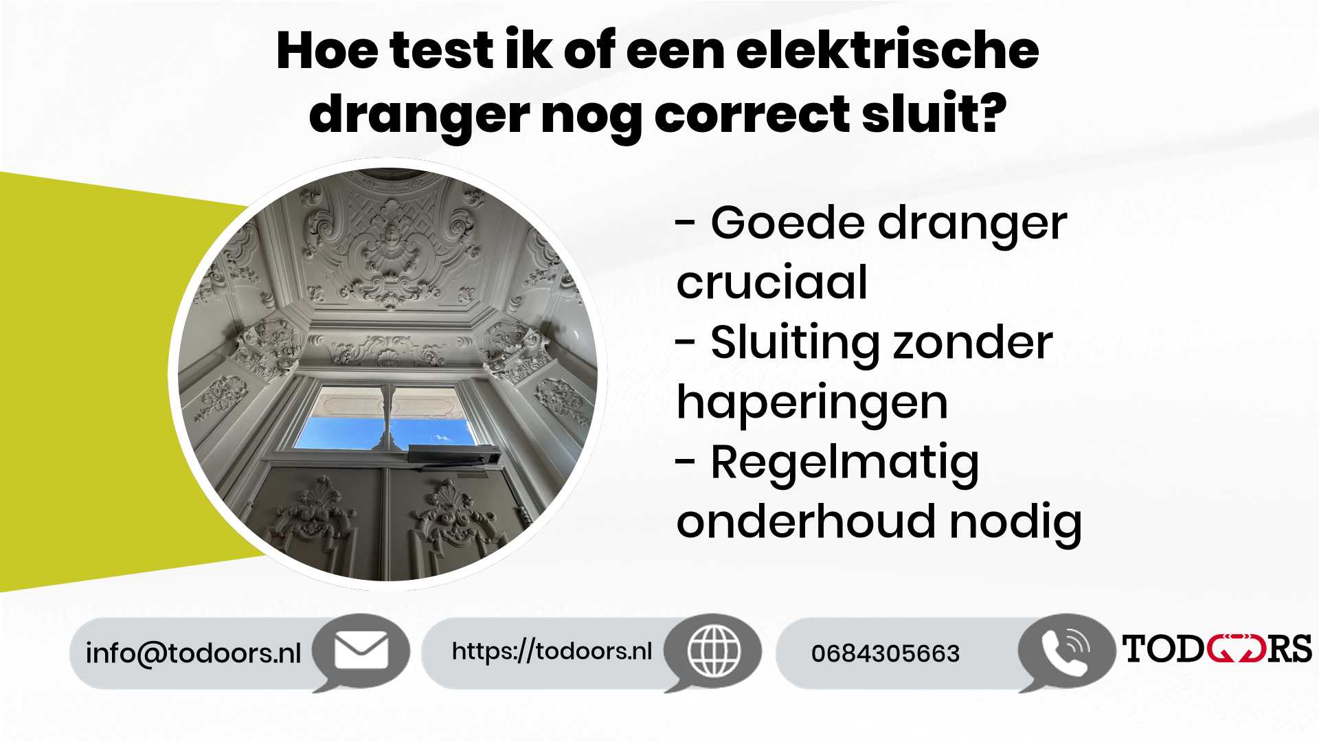 Als je ooit een elektrische dranger hebt gehad, weet je hoe belangrijk het is dat je deur soepel sluit. Maar hoe weet je nu of alles nog goed functioneert? Er zijn enkele eenvoudige manieren om dit te testen, en in dit artikel nemen we je mee door het proces. Laten we samen kijken naar hoe je kunt controleren of jouw elektrische dranger nog correct sluit!