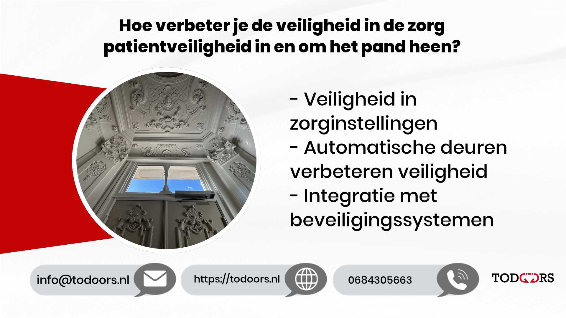 De meeste moderne automatische deuren zijn ontworpen om eenvoudig te integreren met andere beveiligingssystemen. Dit verhoogt de algehele veiligheid van de zorginstelling.