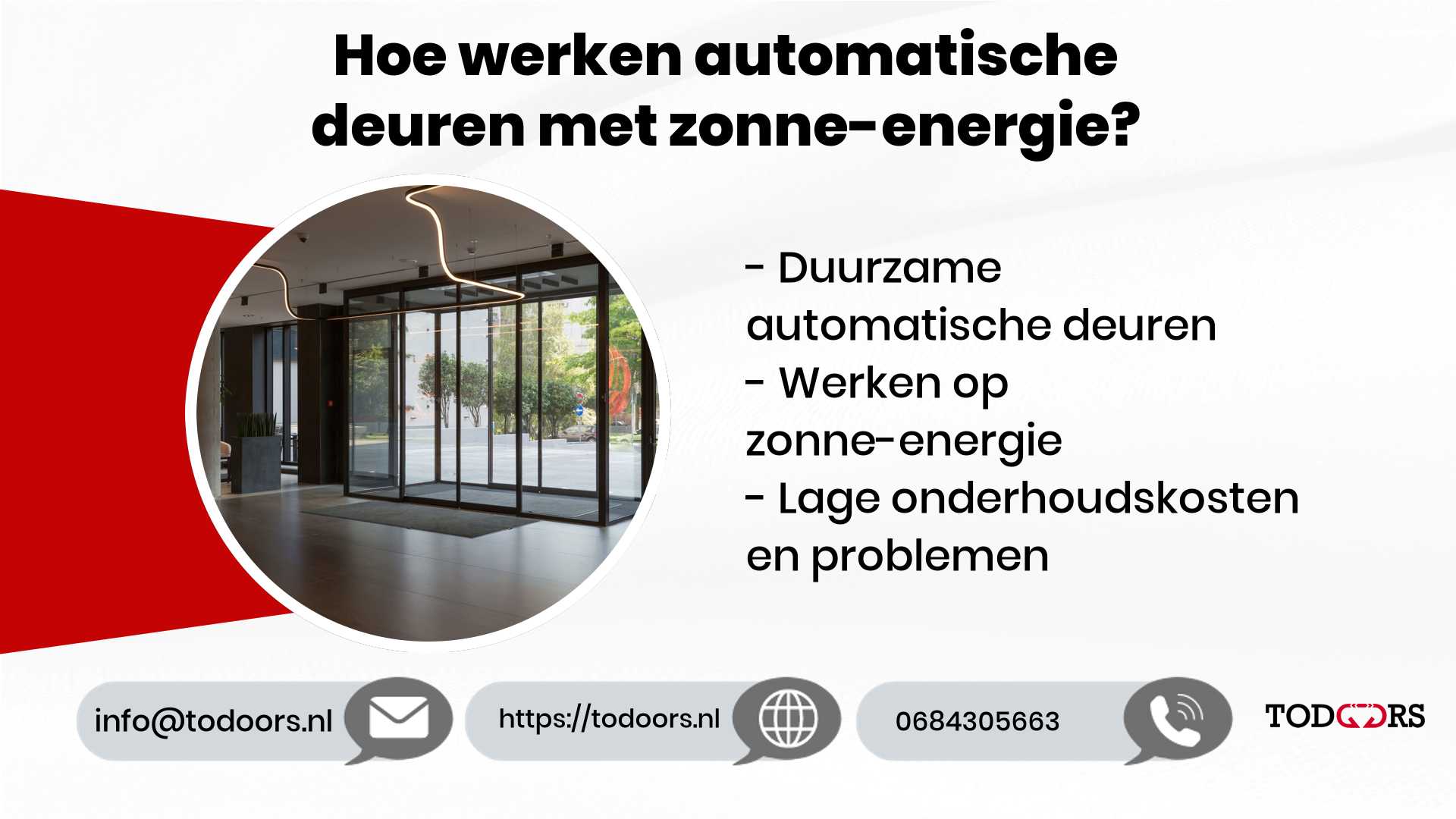 Dus, als je overweegt om je deur te upgraden, kijk dan zeker naar de opties van automatische deuren op zonne-energie. Ze bieden een perfecte mix van gemak en milieuvriendelijkheid.