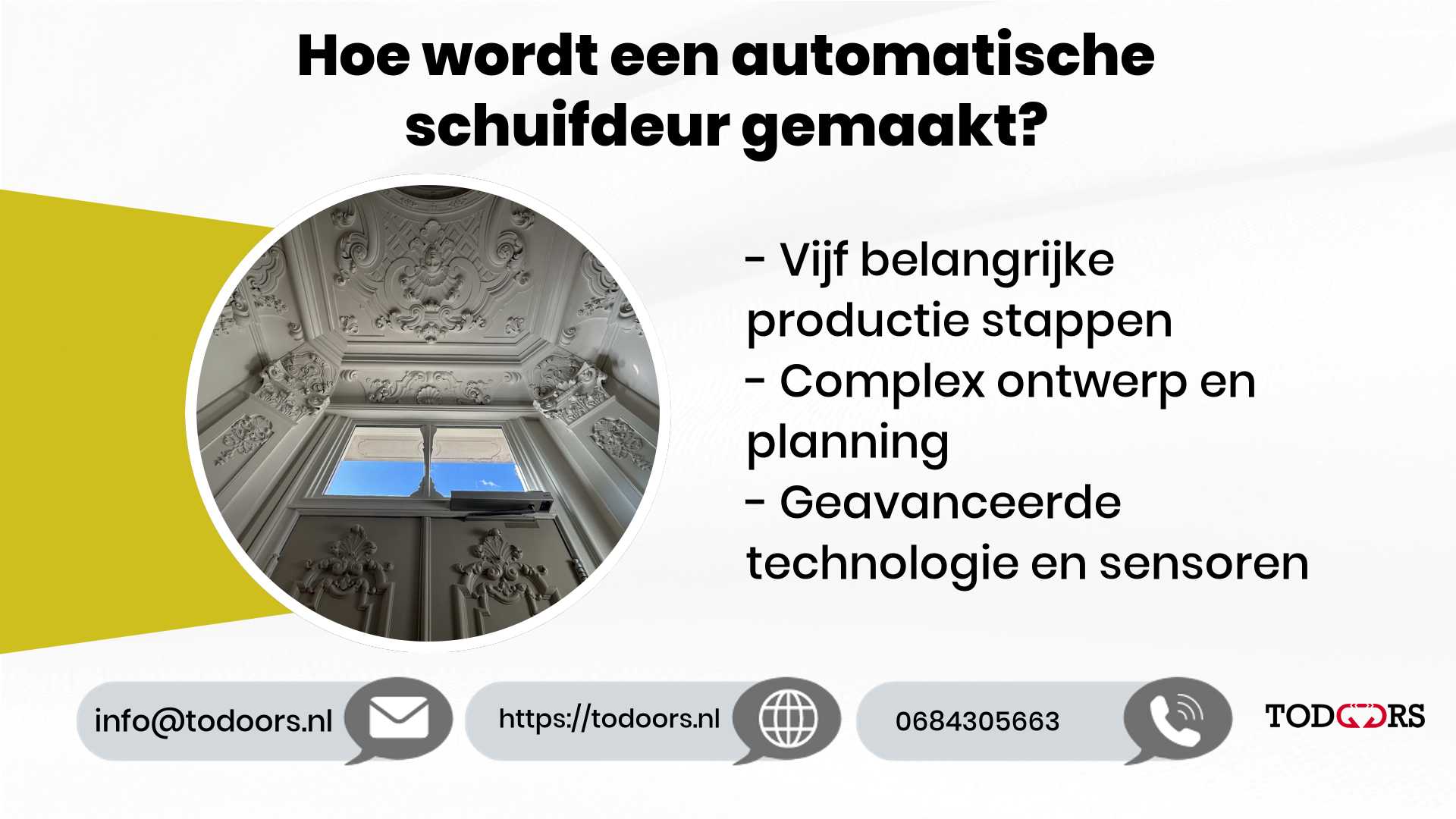 Conclusie: De productie van een automatische schuifdeur is een fascinerend proces vol technische snufjes en creatieve oplossingen. Als je vragen hebt of meer wilt weten over automatische schuifdeuren, neem gerust contact met ons op via de live chat!