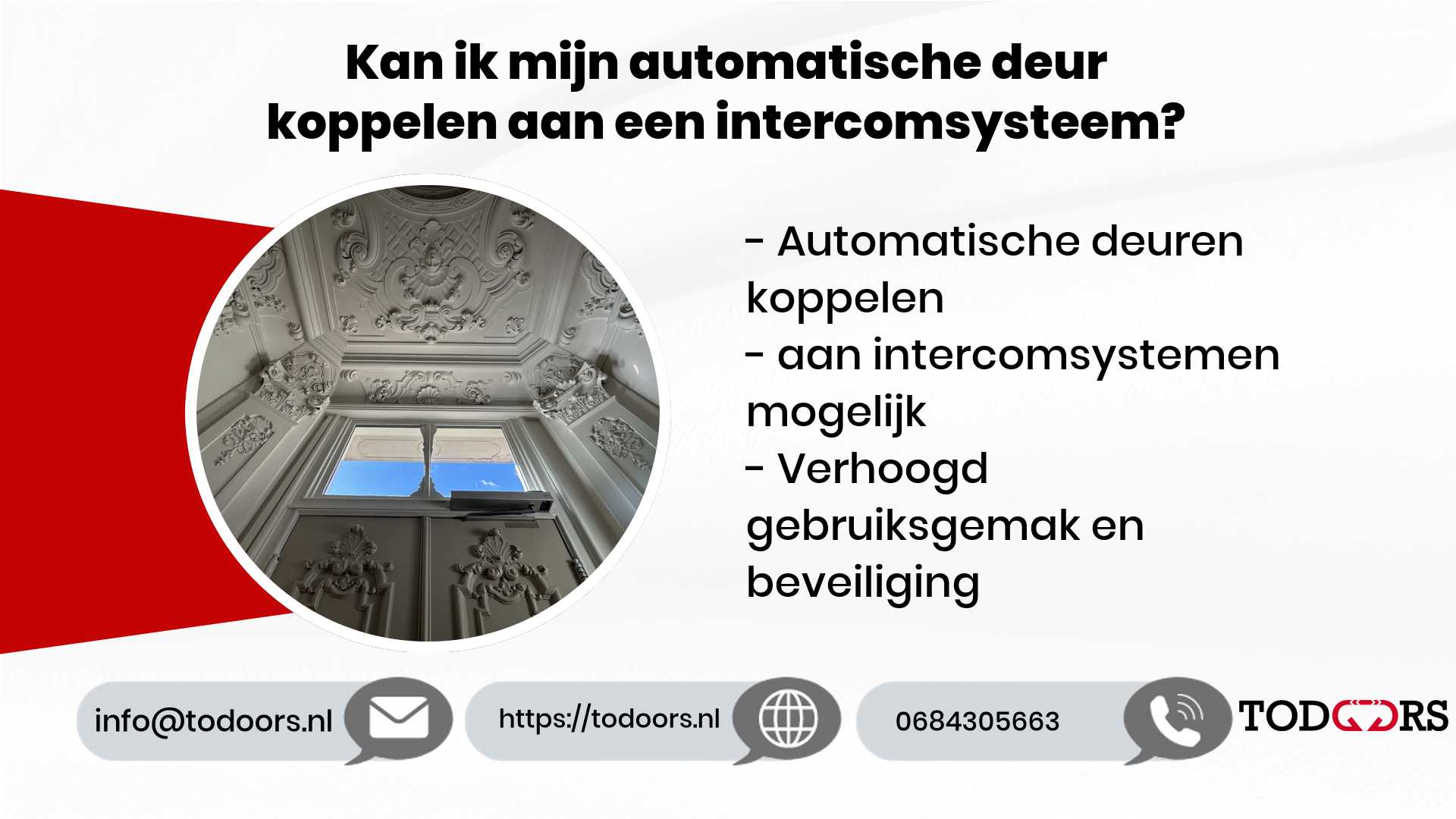 De vraag of je jouw automatische deur kunt koppelen aan een intercomsysteem is er één waar veel mensen mee worstelen. En ja, de mogelijkheden zijn uitgebreider dan je denkt! Zeker, wij zorgen voor een complete integratie van deurautomatisering en communicatie. Dit betekent dat je eenvoudig kunt communiceren met bezoekers en hen toegang kunt verlenen zonder je stoel te verlaten. Maar hoe gaat dat precies in zijn werk? Laten we dat eens nader bekijken.