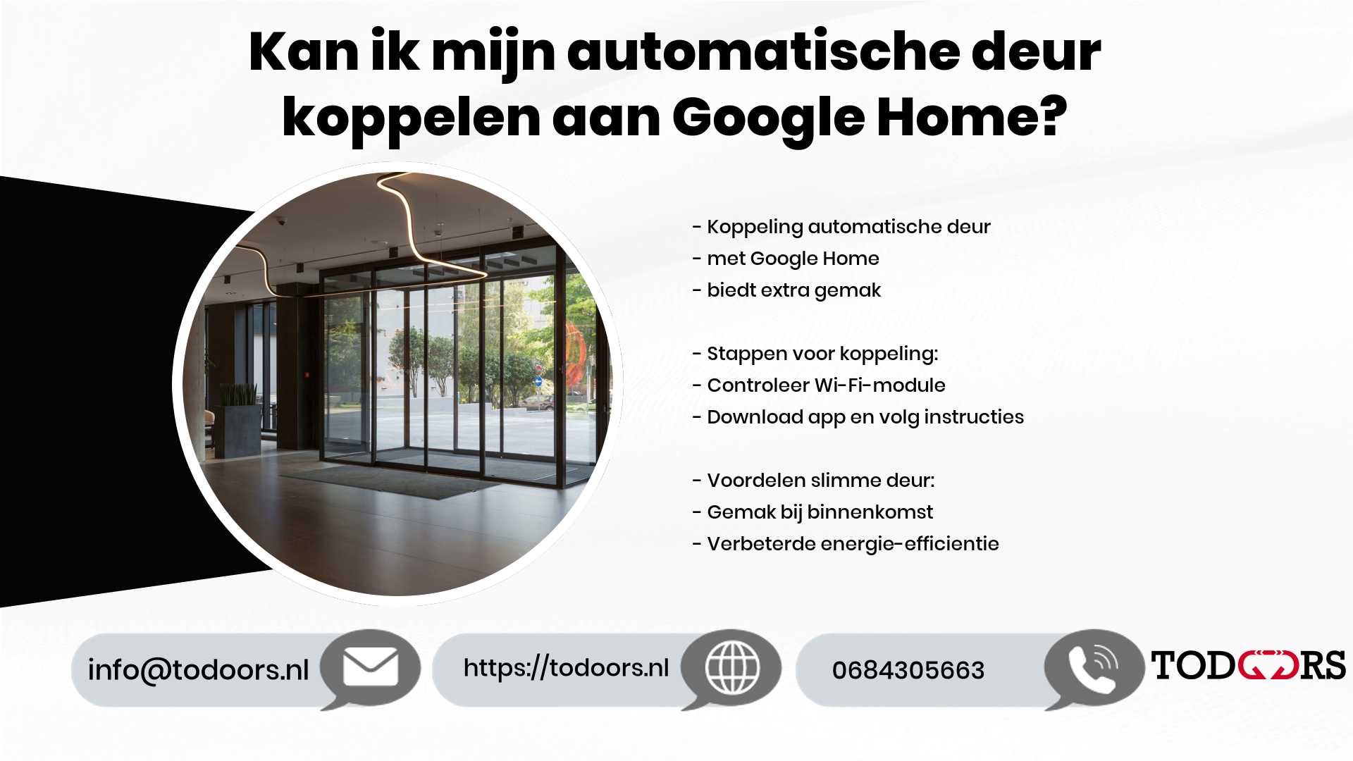 Het koppelen van je automatische deur aan Google Home is niet alleen eenvoudig, maar kan ook je dagelijkse routine aanzienlijk verbeteren. Met slechts een paar stappen kun je de deur bedienen als een pro, zonder ook maar een vingertje te hoeven uitsteken. Aarzelt je nog? Neem gerust contact met ons op via live chat!