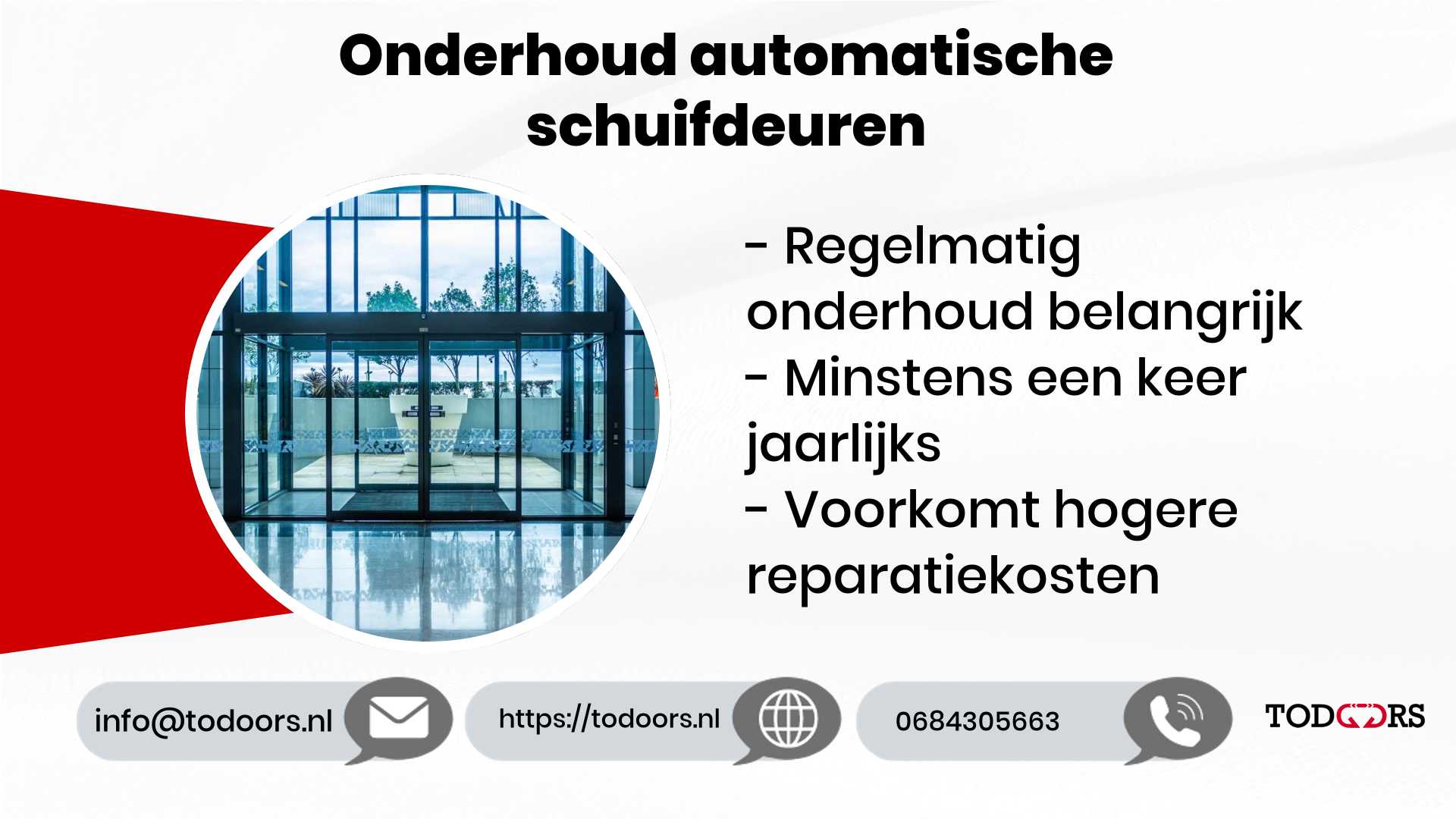 Het negeren van onderhoud kan leiden tot hogere reparatiekosten, ongevallen of zelfs volledige vervanging van de automatische schuifdeur op termijn.