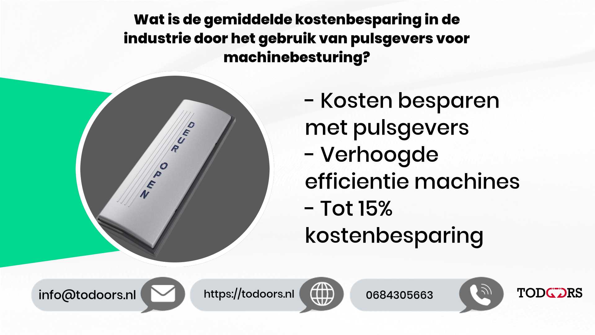 De gemiddelde kostenbesparing door het gebruik van pulsgevers voor machinebesturing in de industrie ligt tussen 10-15%. Dit komt door verhoogde efficiëntie en verminderde stilstandtijd. Minder stilstand betekent meer productie en dus meer winst!