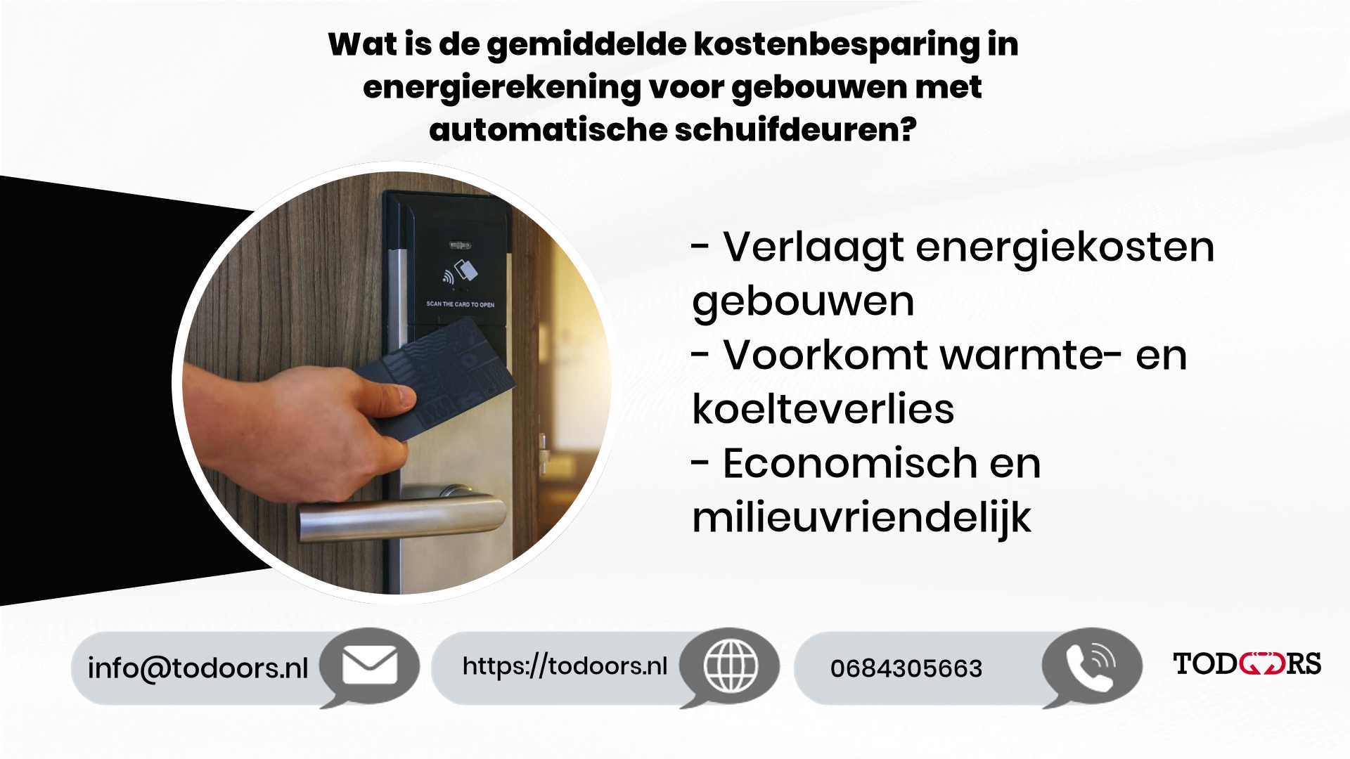 Heb je je ooit afgevraagd hoeveel je kunt besparen op energiekosten door automatische schuifdeuren te gebruiken? Gebouwen met deze slimme deuren kunnen jaarlijks gemiddeld 10-15% besparen op hun energierekening door verbeterde isolatie en efficiënter klimaatbeheer. Maar hoe werkt dit precies? Laten we dat uitzoeken!