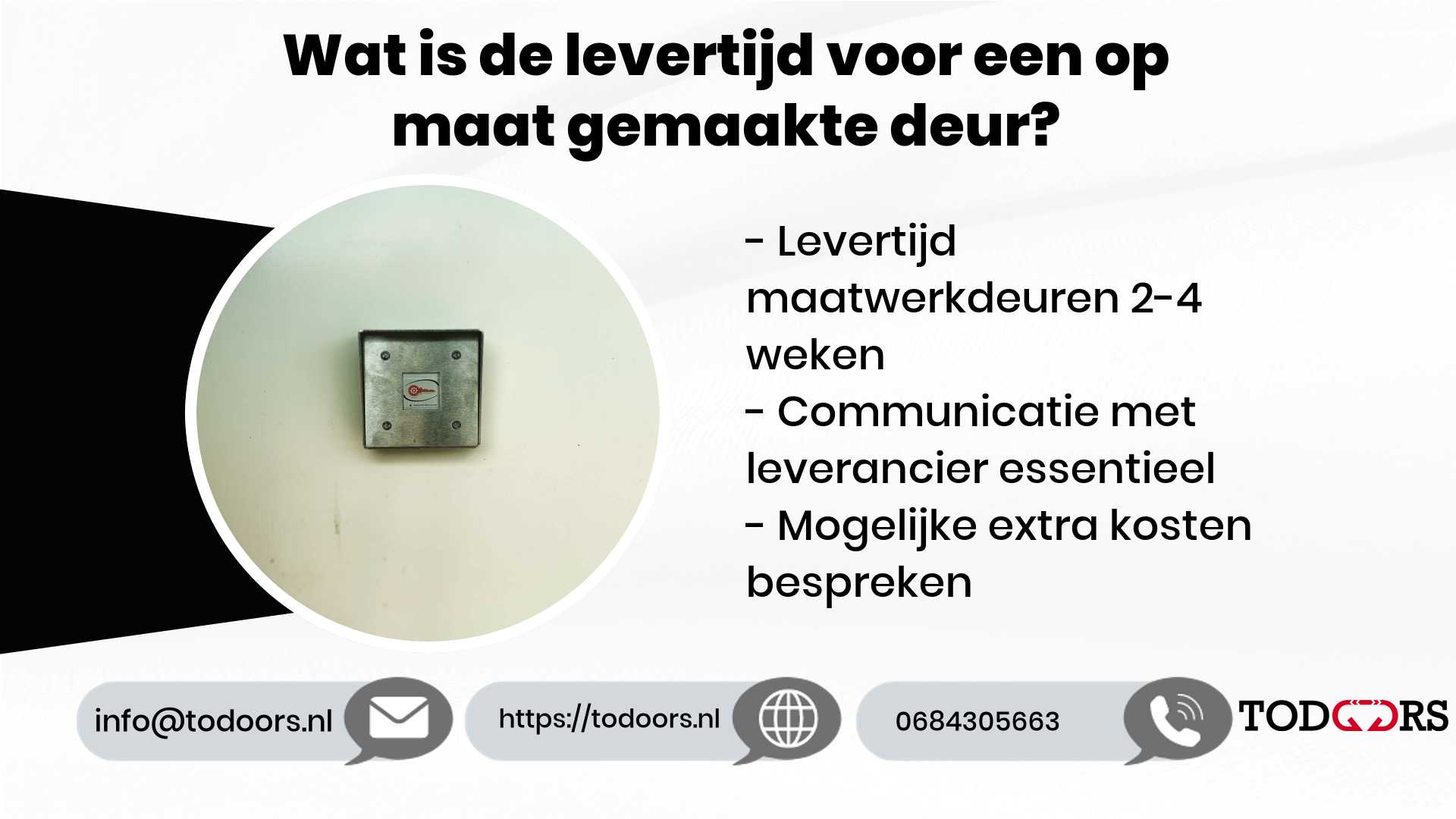 Een goede communicatie met je leverancier is essentieel. Het helpt om realistische verwachtingen te scheppen en eventuele vertragingen voor te zijn. Vele leveranciers, zoals Todoors, zijn altijd bereid om je op de hoogte te houden van de voortgang van je bestelling.