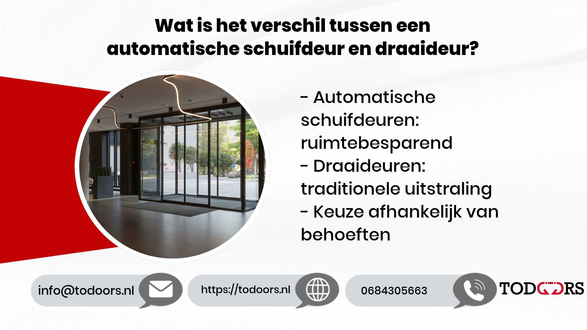 Bij het kiezen van een deur voor je huis of bedrijf komt er veel kijken. Heb je ooit nagedacht over de voordelen van een automatische schuifdeur versus een draaideur? Beide opties hebben hun unieke kenmerken en toepassingen, en het kan een uitdaging zijn om de juiste keuze te maken. In dit artikel bespreken we de verschillen en wanneer je welke deur het beste kunt gebruiken.