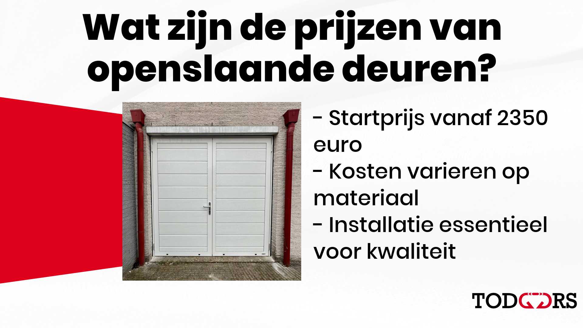 De eerste vraag die bij iedereen opkomt, is natuurlijk: “Hoeveel ga ik betalen voor mijn nieuwe openslaande deuren?” Goed nieuws, de prijzen beginnen al vanaf 2350 euro! Maar laten we niet vergeten dat de prijs kan variëren op basis van diverse factoren zoals materiaal, afmetingen en bijkomende features zoals isolatie of veiligheidsopties.