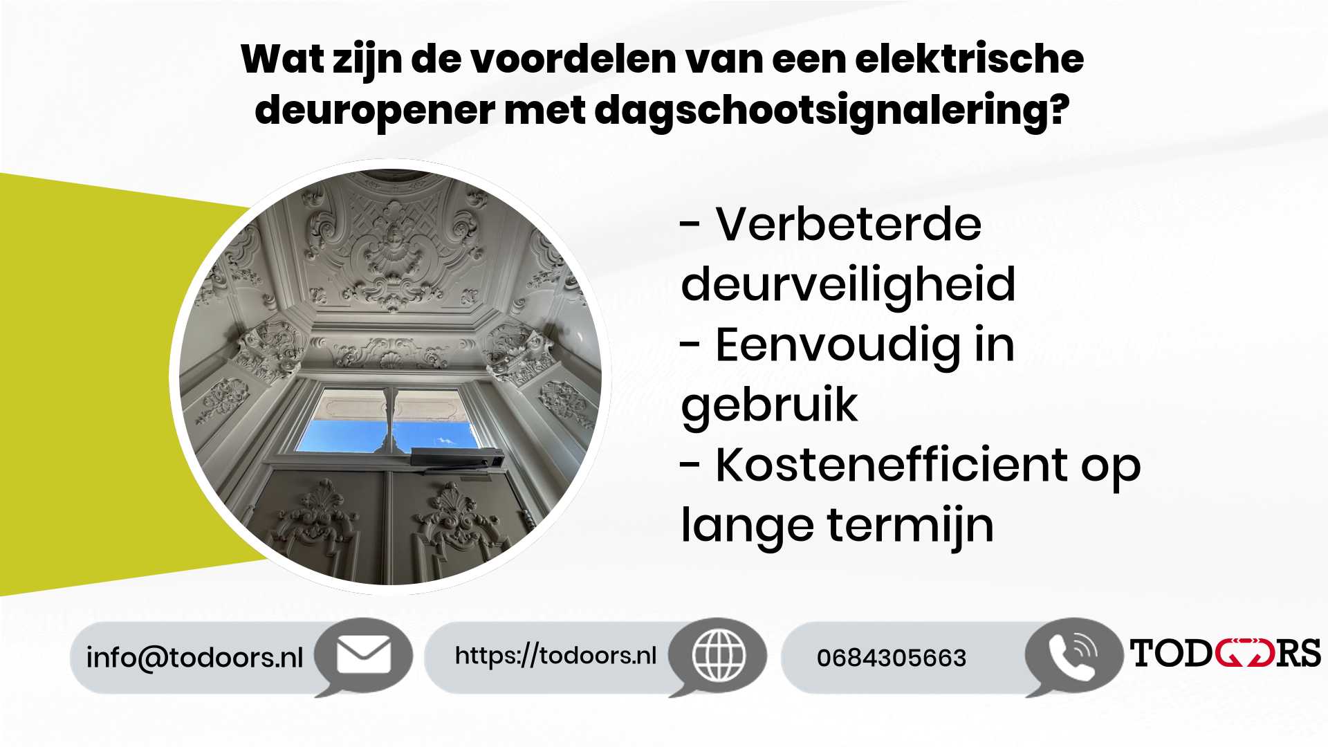 Hoewel de initiële investering in een elektrische deuropener hoger kan lijken dan traditionele deursystemen, bespaar je op de lange termijn. Denk aan lagere onderhoudskosten en verminderde energiekosten. Een goed geïnstalleerd systeem gaat jarenlang mee zonder dat je je zorgen hoeft te maken over frequente reparaties. Wilt u meer weten over de kosten en de beste keuzes voor jouw situatie?