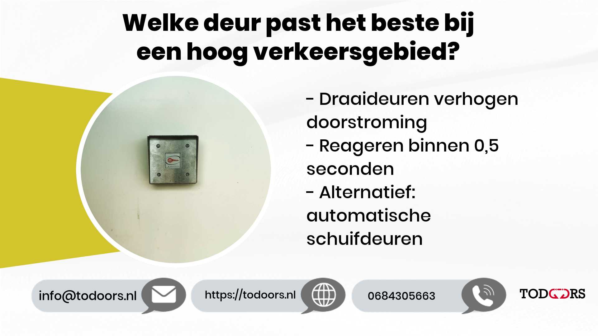 Bij het kiezen van de juiste deur voor een hoog verkeersgebied is het belangrijk om functionaliteit, gebruiksgemak en veiligheid in overweging te nemen. Draaideuren en automatische schuifdeuren zijn beide uitstekende opties die een soepele doorgang garanderen in drukke omgevingen. Neem vandaag nog contact met ons op voor advies op maat!