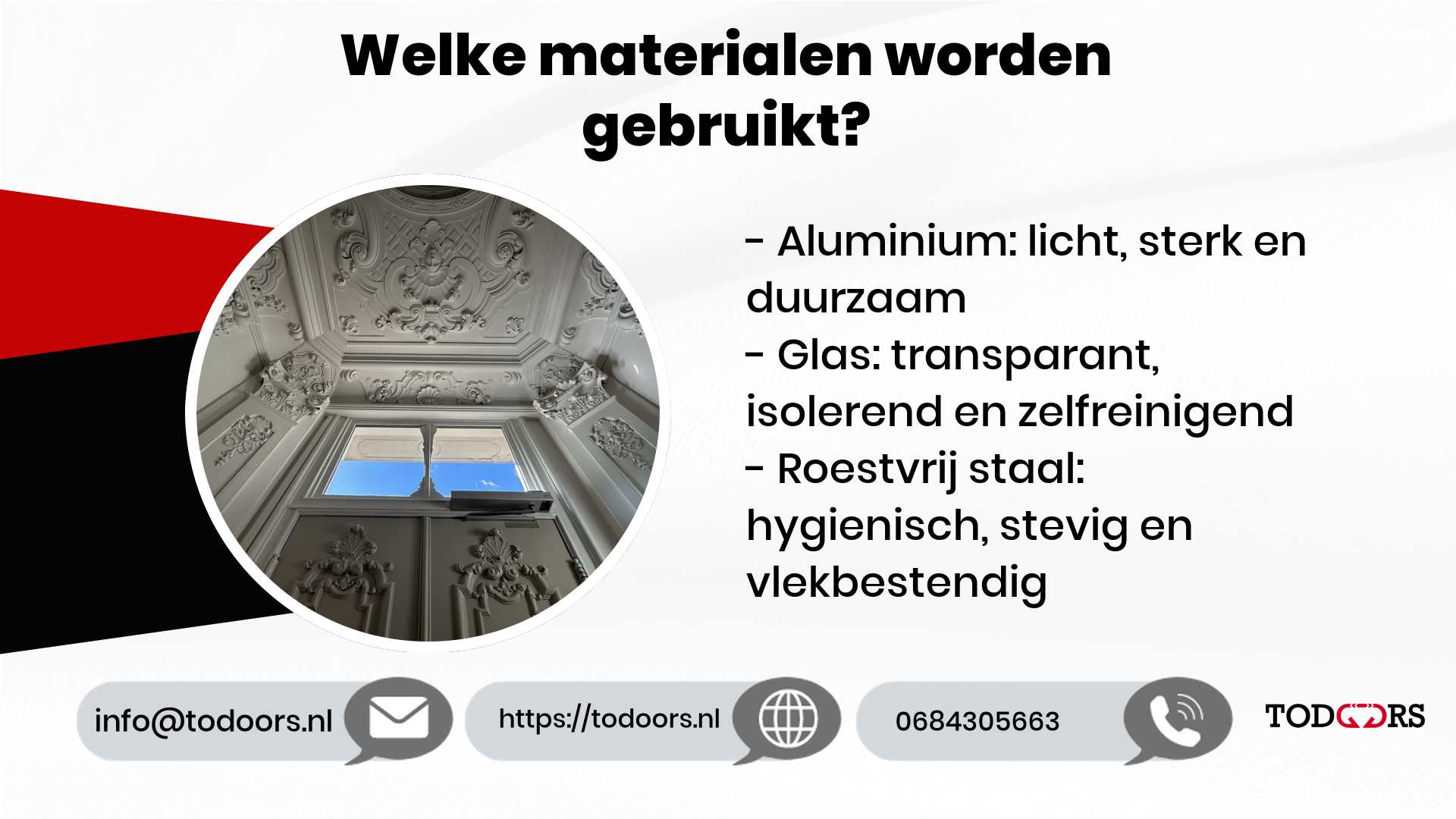 Bij het kiezen van materialen voor je bouwproject, is het essentieel om te kijken naar wat het beste past bij jouw specifieke behoeften. Of het nu aluminium, glas of roestvrij staal is, elk materiaal heeft zijn unieke voordelen. We hopen dat je na het lezen van dit artikel een betere kijk hebt gekregen op de mogelijkheden! Heb je vragen of wil je advies? Neem gerust contact met ons op via live chat 24/7.