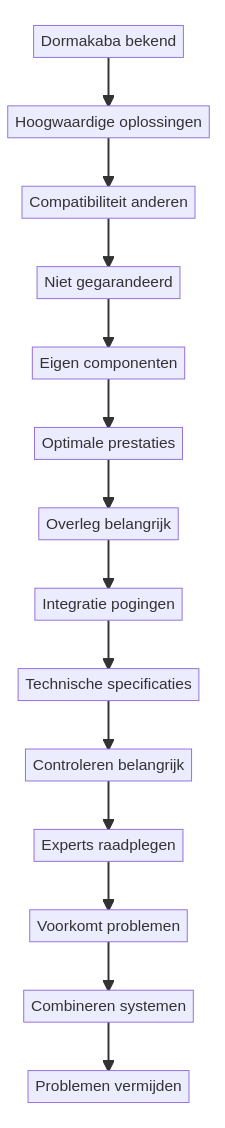 In de meeste gevallen is het raadzaam om vooraf te controleren of de systemen volledig compatibel zijn. Dormakaba producten kunnen soms geïntegreerd worden, maar overleg is essentieel.